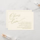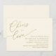 Anuncie sua alegria para sempre em estilo com o nosso moderno cartão de convite para celebração do chá de panela de tema ouro amarelo (Saúde para amar). Com seu design sofisticado, mas lúdico, este convite certamente define o tom de um evento inesquecível. O cartão de convite apresenta um design moderno de escrita minimalista, acrescentando um toque de elegância do eterno à sua celebração. Projetado por TeeshaDerrick