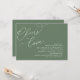 Anuncie a sua alegria para sempre em estilo com o nosso moderno cartão de convite para celebração de chás de panela do sábio verde da floresta (Saúde para amar). Com seu design sofisticado, mas lúdico, este convite certamente define o tom de um evento inesquecível. O cartão de convite apresenta um design moderno de escrita minimalista, acrescentando um toque de elegância do eterno à sua celebração. Projetado por TeeshaDerrick