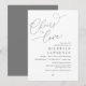 Anuncie sua alegria para sempre em estilo com o nosso moderno cartão de convite para celebração de chás de panela da cinza das designs escuras. Com seu design sofisticado, mas lúdico, este convite certamente define o tom de um evento inesquecível. A carta de convite apresenta um moderno design de escrita romântica minimalista, acrescentando um toque de elegância eterno à sua celebração. Projetado por TeeshaDerrick