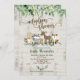 Convite à adoção de um chá de fraldas neutro em termos de gênero para acolher a nova adição! A design apresenta nossos lindos animais de floresta em um fundo de latido de aquarela com muitos elementos verdes e divertidos modernos.