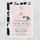 Esta bonita e moderna "rosa, moo, pinto-a-rabisco do", rua/primeiro convite de aniversário, apresenta um porco, galinha e vaca com um celeiro cor-de-rosa sobre um fundo cor-de-rosa esbranquiçado com uma borda branca. O verso apresenta um fundo branco com padrões de vacas negras. Personalize para suas necessidades. Você pode encontrar produtos correspondentes na minha loja.