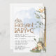 Woodland Animal Baby Q Backyard design neutro de gênero para o seu chá de fraldas de CHURRASCO no quintal com tipografia artística para o cabeçalho principal, e animais de floresta fofos, ourivesgo, esquilo, coelho e folhagem e um motif de coelho coordenador no verso. Personalize facilmente o resto do texto com seus detalhes.