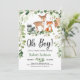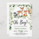 Animais da floresta florestal oh chá de fraldas convidado personalizado, com animais bonitos - cervo, raposa, coruja, casulo e folhas verdes frescas de eucalipto. Rosas de lâmina ©
