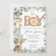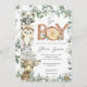 Personalize esse encantador convite para Chás de fraldas de animais florestais, fácil e rapidamente. Basta clicar no botão personalizar para editar os textos, alterar as fontes e as cores das fontes. Apresentando a aquarela de animais de floresta desenhados à mão e folhagem rústica verde adorna manchete "é um menino". Itens correspondentes disponíveis no repositório. c) Paperie fina somerset