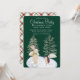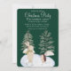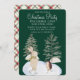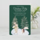 Este convite personalizado de Natal ou festa de fim de ano apresenta uma cena aquarela quente e aconchegante de inverno nevado. Dois adoráveis animaizinhos da floresta, um ouriço e um coelho, estão patinando entre as árvores. O fundo é um verde escuro.