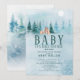 Linda cena de inverno em aquarela com animais da floresta para convite de chá de bebê para menina ou menino. Vire nosso convite para ver um verso coordenado para um toque extra especial.
