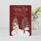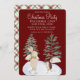 Este convite de Natal ou festas de férias personalizado apresenta uma cena aquática quente e confortável de inverno nevado. Dois pequenos e bonitinhos animais de floresta, um ouriço e coelho, estão patinando no gelo entre as árvores. O fundo é uma cor burguesa rica.