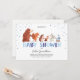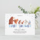 Europeia: Um convite para chás de fraldas fofo e divertido! Tudo desenhado à mão! Bons animais com confete. Cores azuis para um chá de fraldas.
