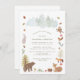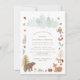Basta criar um convite para chás de fraldas de animais de floresta fofinhos com este modelo com coruja, raposa, urso, esquilo, veado, cogumelos e mais para o seu chá principal de campo para a futura mãe. DICA: Verifique os outros itens nesta coleção com o mesmo design para obter uma experiência de compro completa e fácil para a sua parte chá de fraldas.
