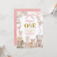 Convite de primeiro aniversário Animais da floresta rosa Coquette na primavera