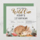 selvagem um, primeiro aniversario, animais da floresta, amigos do chão da floresta, folhagem de folhas botânicas rústicas, eucalipto verde, doce gira e caprichosa, cachaça de cervo, cachaço de raposa, coelho de coelho, moça neutra