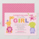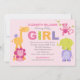 Convite Animais da Selva Rosa Festa de Bebê Menina