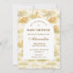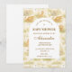 Um design doce estilo livro de histórias da savana com animais bebês pintados com aquarela suave, incluindo leões, girafas e elefantes, cercados por verdejante selva e um fundo botânico delicado. A paleta neutra e quente de creme, dourado mel e oliva suave cria uma estética atemporal inspirada na natureza, enquanto o layout arqueado elegante fornece um belo espaço para detalhes do evento.