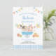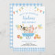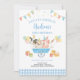 Convite Animais de Fazenda Menina Azul Gingham Garota Prim