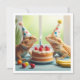 Um convite de aniversário engraçado, mostrando dragões barbudos comendo bolo e vestindo chapéus de festas, excelente para amantes de lagartos e amantes de répteis. Toda a escrevendo no convite pode ser mudada, não precisa ser uma pintura, pode ser tão facilmente para uma festa de aniversário comum.