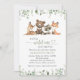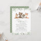 Convide amigos e família de estilo e dê o tom para seu dia especial com este charmoso convite para chás de fraldas. Design apresenta animais florestais (urso, raposa, guaxinim, fawn) e verde sobre fundo branco.