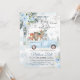 Animais do Bosque de Inverno Caminhão Azul Convite de Chuvada de Bebê Floco de Neve Menino Baby É Frio Lá Fora