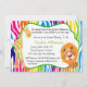Este divertido convite para chás de fraldas inclui uma girafa e um leão bonitos com uma impressão de animais zebra em fundo arco-íris. As seleções de fontes têm uma sensação de capricho. Este convite funciona bem para um chá neutro em termos de gênero, bem como para um chá de fraldas de raparigas ou rapazes. Insira os detalhes do evento no lugar do texto de exemplo mostrado. Você pode mover o texto ao redor, adicionar ou excluir linhas conforme desejar e selecionar fontes diferentes para se adequar ao seu gosto e estilo.