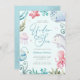 Animais Do Oceano Sob O Convite Para Chá de fraldas Do Sea Boy. Adorados com criaturas lúdicas do oceano como um golfinho, estrelas, polvo e água-viva, ao lado de corais coloridos, todos colocados contra um pano de fundo azul sereno. A caligrafia encantadora expressa lindamente "Sob o Mar", definindo o tom de uma aventura aquática para dar as boas vindas à sua pequena.