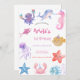 Celebre o dia especial do seu pequeno com este convite de aniversário temático sob o mar, apresentando vida marinha em aquarela de todos os tipos!