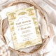 Um design de safari estilo conto de fadas com animais bebês em aquarela suave, incluindo leões, girafas e elefantes, cercados por verdejante folhagem da selva e um fundo botânico delicado. A paleta neutra e quente de creme, dourado mel e oliva suave cria uma estética atemporal inspirada na natureza, enquanto o layout arqueado elegante fornece um belo espaço para detalhes do evento.
