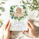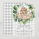 Encante seus convidados com este encantador Convite de Chuvinha de Bebê Arca de Noé com Animais Fofos em Xadrez! Contra um fundo suave de xadrez cinza, uma arca de madeira caprichosa flutua suavemente, transbordando de animais adoráveis e emoldurada por folhas de eucalipto exuberantes.