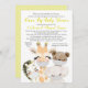 Movimento neutro por gênero através de convites para chuvas de bebês com animais bebês adoráveis vestindo máscaras num fundo de ponto amarelo. Esse drive bonito e neutro por sexo, por convite ao chá de fraldas, é facilmente personalizado com os detalhes de seu evento. Você pode alterar o texto, o estilo da fonte e a cor da fonte para o que você preferir.