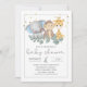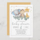 Sexo Safari Neutro e Convite para Chás de fraldas Verde. O convite da festa tem um elefante, macaco e girafa com folhas verdes e pontos de ouro. Mamãe vai adorar esse convite de chá de fraldas do Safari moderno, moderno e giro.