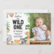 Animais Safari Selvagens Um Aniversário White Foto Convite Personalize este belo convite com suas próprias informações e fotos!