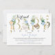 Animais Safari Chá de fraldas Virtual Greenery Dourado Convite.
