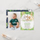 Personalize esta vibrante foto/convite de primeiro aniversario da Jungle Animal com os detalhes da festa do seu filho, de forma fácil e rápida. Apresentando lindos bichos-da-floresta, verde tropical e madeira número um. Itens correspondentes disponíveis no repositório! c) O Feliz Cat Studio