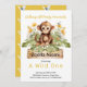 Transforme o seu primeiro aniversário numa aventura safari inesquecível com este primeiro aniversario selvagem Um convite para animais da selva! A design apresenta um curioso macaco bebê, verde tropical arrojado e flores amarelas e brancas alegres. Esta design Wild One é perfeita para uma festa temática na selva. A divertida letra e o vivo vibe o palco de um dia cheio de jogos de animais, salgadinhos e memórias selvagens. Personalize com os detalhes do seu partido e convide seus convidados a se juntar à comemoração!