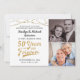 Convide os convidados para uma festa de aniversário de 50 anos de casamento com esses convites com um título editável em tipografia retrô (amostra #) 50 ANOS EM PARA SEMPRE, luzinhas e personalizado com 2 fotos (talvez use fotos de Então e Agora para uma lembrança memorável) em preto e dourado. DICA DE FOTO: Para obter resultados mais rápidos e melhores, escolha uma foto com o assunto no meio e/ou pré-recorte para uma forma semelhante à mostrada ANTES de fazer o upload e use a aba ALTERAR na seção PERSONALIZAR. Entre em contato com o designer pelo Zazzle Chat ou makeitaboutyoustore@gmail.com se você gostaria que esse design fosse modificado, em outro esquema de cores, em outro produto ou gostaria de itens coordenados.