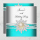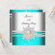 Aniversário Azul Azul Aqua Turquoise Branca Flor Elegante De Pérolas Branca Convidam Festa de aniversário Rico Ornamentado. A Classe Elegante Ocasiona Qualquer Idade. Convites de aniversário de festa Modelo