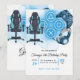 Modelo de convite de aniversário azul com design de videogame, convite de festa de jogos, convite de cadeira de jogador para impressão, impressos de jogos