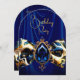 Convite Aniversário Blue Silk Faux Dourada Jewel Paisley