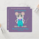 Um rato bonito, engraçado, bonito e muito elegante vestindo belos macacões e uma gravata de arco deseja um feliz aniversário ao seu pequeno. Encherá as crianças e também os adultos. Todos os textos são personalizáveis.