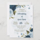 Belo convite de aniversário romântico com flores azuis marinhos e azuis leves e poeirentas e algumas folhas bonito. PARA MAIS PRODUTOS CORRESPONDENTES, clique na coleção acima ou entre em contato comigo