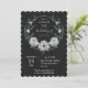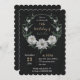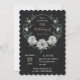 Convite de aniversário único com flores brancas românticas e flores verdes deixa coroa botânica sobre fundo preto. PARA MAIS PRODUTOS CORRESPONDENTES, clique na coleção acima ou entre em contato comigo.