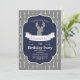 Cervos rústicos contudo modernos das cinzas e do marinho, setas, e convites temáticos do aniversário do antler.