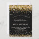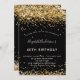 Um convite moderno, na moda e glamouroso para uma festa de aniversário 40ª (ou qualquer idade). Um fundo preto decorado com poeira falsa dourada. O nome é escrito com um moderno estilo escrito à mão. Personalize e adicione os detalhes da sua festa. Adicione mais texto no verso ou exclua se não desejar.