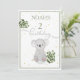Uma Koala fofa com folhas de eucalipto e manchas de ouro é a base do convite de aniversário desta criança. Verde com manchas de ouro este bonitinho Koala está na frente e atrás deste convite de aniversário personalizado. Altere facilmente as informações para o seu próprio design personalizado.