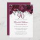 Convite Aniversário da 90 de Borgonha com Glitter Floral
