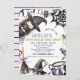 Halloween Roxo, bruxinha verde, bruxinha, dia de aniversário, convite para bruxas bonitas, convite para o dia das bruxas, convite para o aniversário, com um belo feiticeiro, vassoura de bruxas, chapéu de bruxas, caldeirinhas, teias de casaco e muito mais. Este convite para bruxas de Halloween é ideal para uma festa de aniversário de fantasia do Dia das Bruxas.