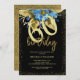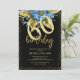 Convite Aniversário da Caligrafia Dourada Floral Azul