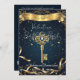 Desbloqueie uma noite de celebração sofisticada com este convite de aniversário-chave do ouro de ornamentado. Com filigre barroco, matizes de marinho profundo e sotaques de ouro brilhantes, esse convite expele mistério, elegância e exclusividade. Perfeito para aniversários de luxo, eventos inspirados em vintage e mascarada social.