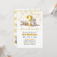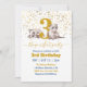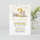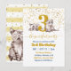 Ilustração em aquarela de adoráveis bebês gatos em frente ao número 3 em ouro. Corações brilhantes de ouro rodeiam esta criatura animal fofa que diz "miau!". Celebre o aniversário fofo do seu filho com este simples convite. O título "a parte pretendida" está no estilo manuscrito, enquanto a legenda "aniversário de 3 anos" está em um estilo de fonte mais infantil.