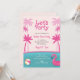 Jogue uma festa de aniversário na piscina com esta moderna "boneca de praia Malibu" inspirada na convite de festas de piscinas para crianças ou adolescentes. No topo, está "vamos party" exibido em uma fonte retrô rosa brilhante. O design também apresenta palmeiras cor-de-rosa e uma piscina de natação com uma floaty flamingo e uma bola de praia. A parte traseira da placa é rosa, mas você pode mudar isso para qualquer cor.