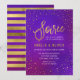 Convite de aniversário de casamento elegante com uma borda de estrelas e a palavra "Soirée" em dourado falso sobre um fundo de aquarela roxa. Um convite de aniversário versátil, perfeito para celebrar qualquer quantidade de anos juntos. O cartão inclui um verso listrado. Confira outros itens correspondentes aqui https://www.zazzle.com/collections/elegant_starry_purple_watercolor_celebrations-119469232199993091?rf=238364477188679314