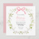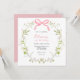 Adorável convite de Aniversário apresenta uma cor d'água, um adorno floral com um arco cor-de-rosa. Personalize com suas informações ou clique em "Clique para personalizar mais" para editar estilos de fonte, tamanho e cores.